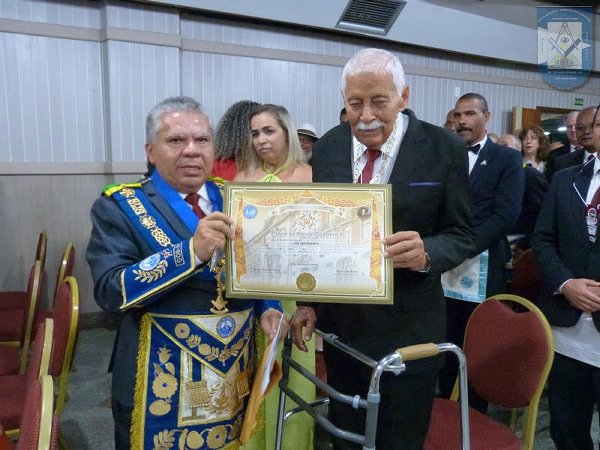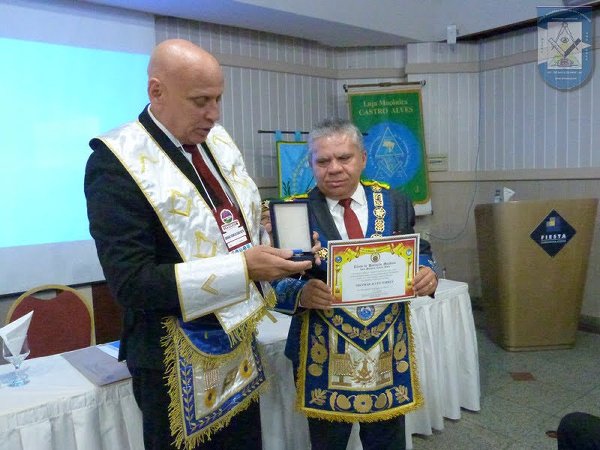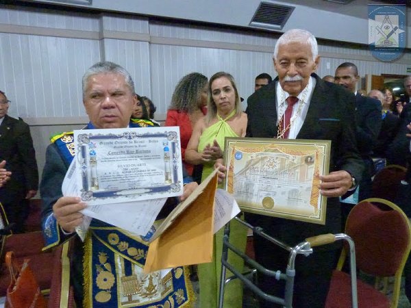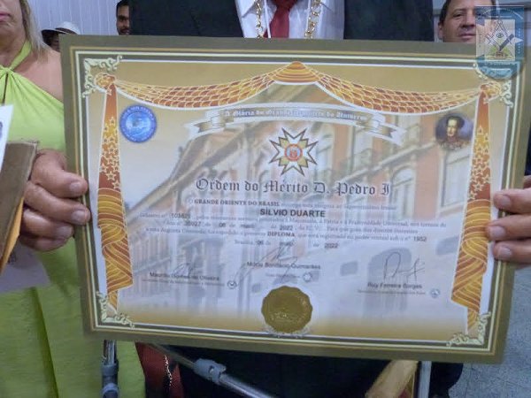 Nas fotos acima temos a homenagem prestada pelo Grande Oriente do Brasil, concedendo a Ordem do Mérito D. Pedro I ao Ir.’. SILVIO DUARTE, com a respectiva comenda, sendo designado pelo Grão Mestre Geral para fazer a sua entrega, o Em.’. Ir.’. OSCIMAR ALVES TORRES, Grão Mestre Estadual do GOB-BA; em seguida, foi entregue ao insigne Sapientíssimo Irmão SILVIO DUARTE, a Comenda Ruy Barbosa e o seu respectivo diploma, do GOB-BA, concedida pelo seu Grão-Mestre Estadual e entregue pelo Venerável Mestre da Loja do Irmão homenageado, JOSE ANGELITO ALVES DA SILVA.