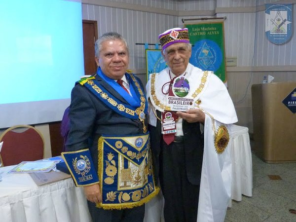Da mesma forma, o Ser.’. Ir.’. JULIANO COELHO BRAGA 33º, recebeu o seu Troféu de Palestrante e Diploma de Reconhecimento, antecipadamente, pela palestra que fará no dia seguinte, de acordo, com a programação.