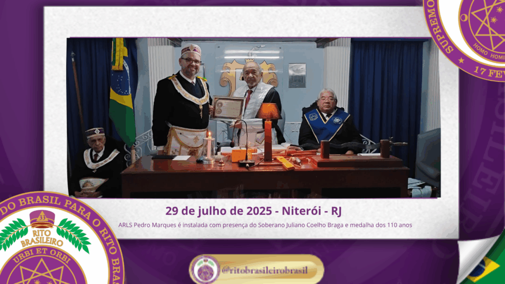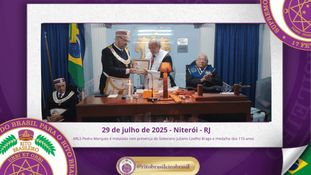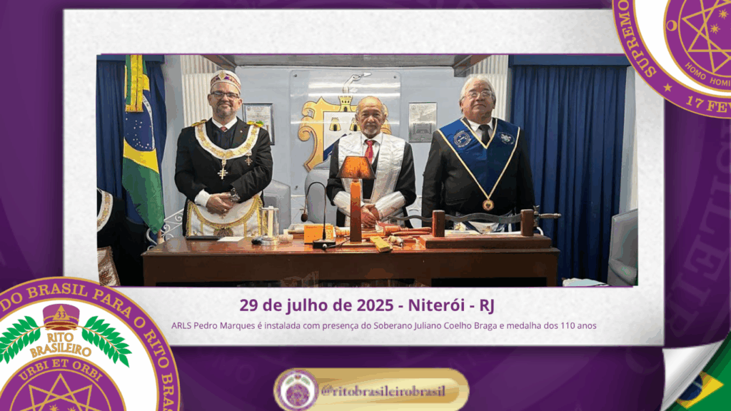 No dia vinte e nove de julho de dois mil e vinte e cinco, o Soberano Grande Primaz Juliano Coelho Braga participou da instalação da Augusta e Respeitável Loja Simbólica Pedro Marques nº 201, ao Oriente de Niterói, em uma ocasião histórica para o Rito Brasileiro de Maçons Antigos, Livres e Aceitos.