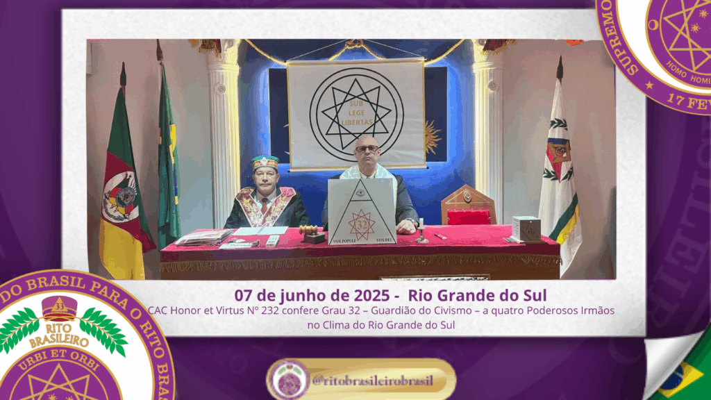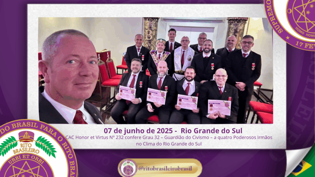 Na manhã do dia sete de junho de dois mil e vinte e cinco, o Colendo Alto Colégio Honor et Virtus Nº 232, sob a presidência do Egrégio Mestre Cristian Rizzardi, reuniu‑se para a Colação do Grau de Guardião do Civismo, Grau 32 da hierarquia dos Altos Graus Filosóficos do Rito Brasileiro, jurisdicionado ao Supremo Conclave do Brasil.
