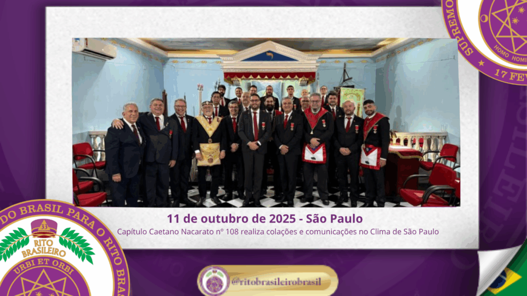 O Ilustre e Sublime Capítulo Caetano Nacarato nº 108, ao Clima de São Paulo, promoveu, no dia 11 de outubro de 2025, três importantes Sessões Filosóficas conduzidas com absoluto rigor ritualístico pelo Ilustre Irmão Aterzata Leandro Rigamonti, reafirmando o compromisso inabalável deste Capítulo com a formação, elevação e instrução dos Ilustres Irmãos no seio do Rito Brasileiro.
