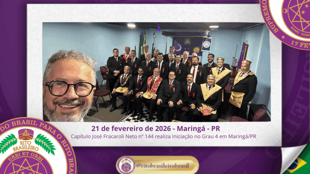 No dia 21 de fevereiro de 2026, o Ilustre e Sublime Capítulo José Fracaroli Neto nº 144, ao Vale de Maringá, realizou Sessão Magna de Iniciação ao Grau 4 – Mestre da Discrição, reunindo 22 Irmãos em ambiente de elevada harmonia e rigor ritualístico.