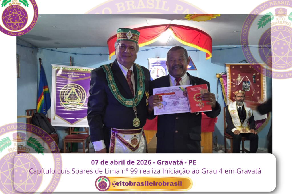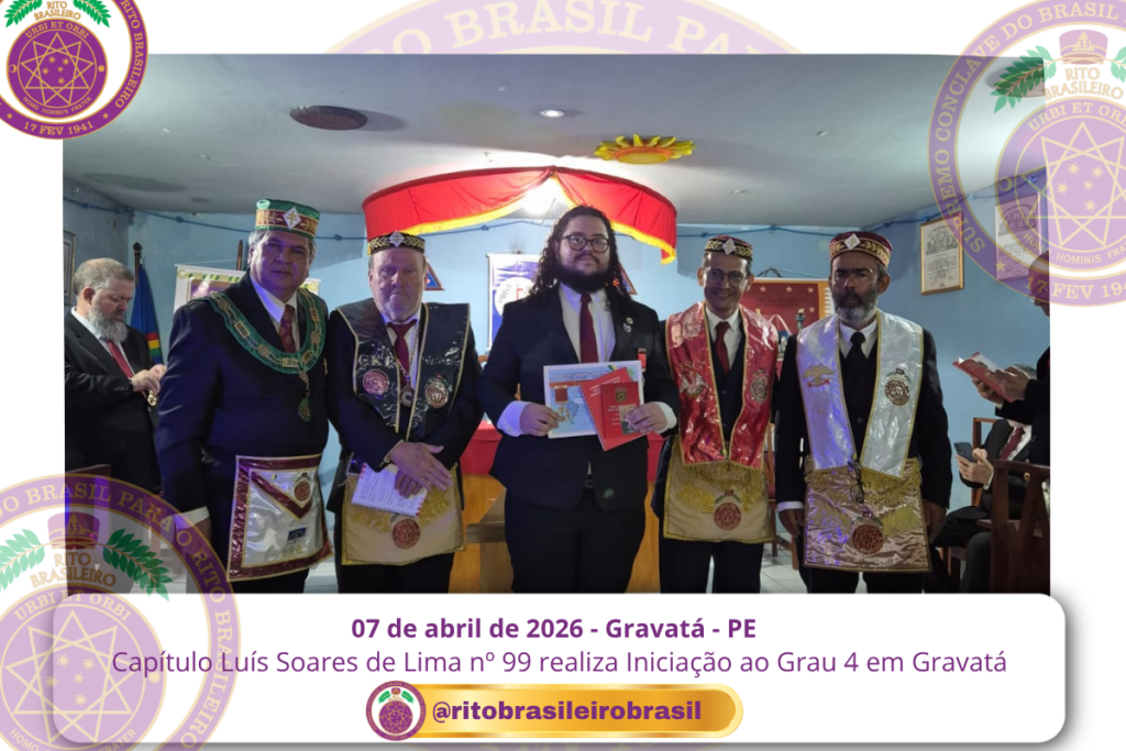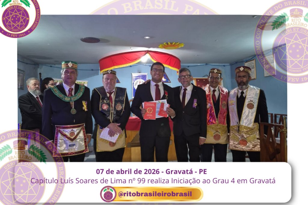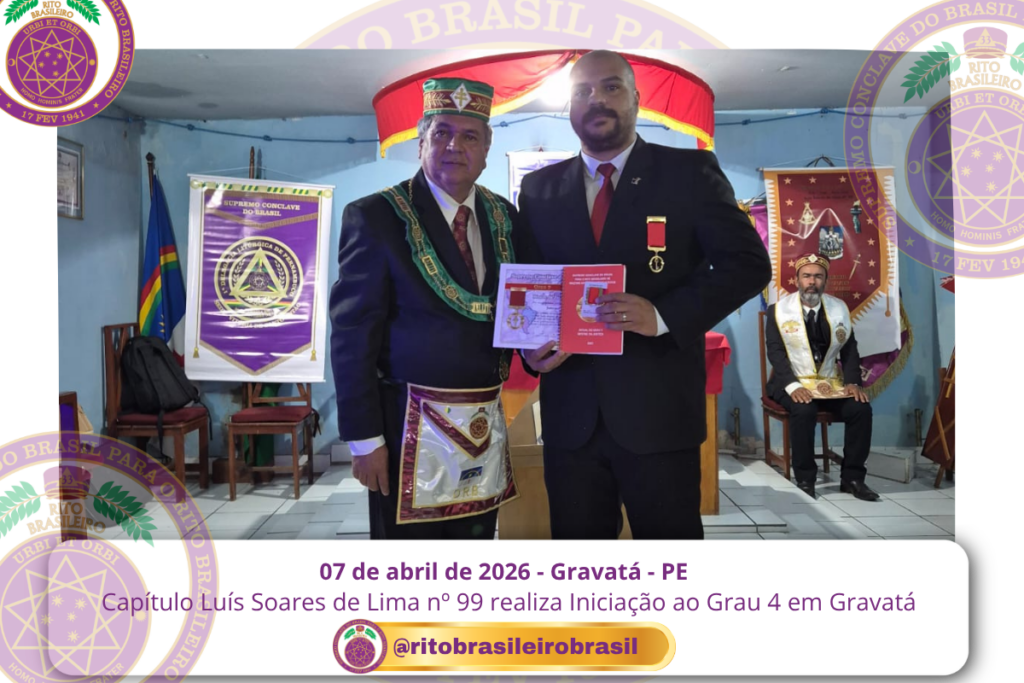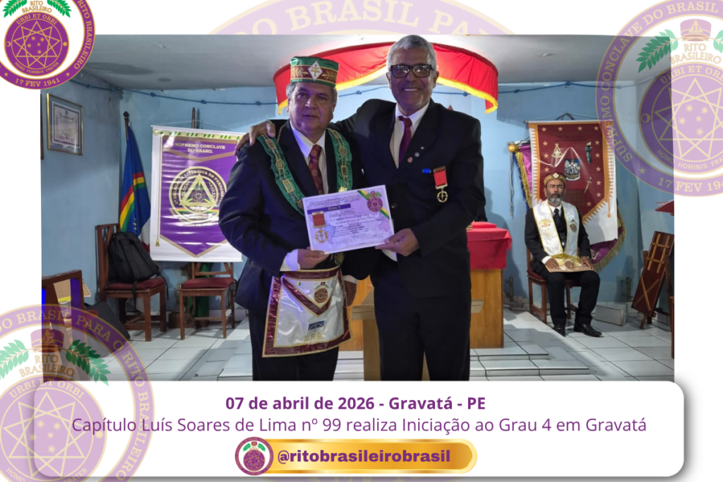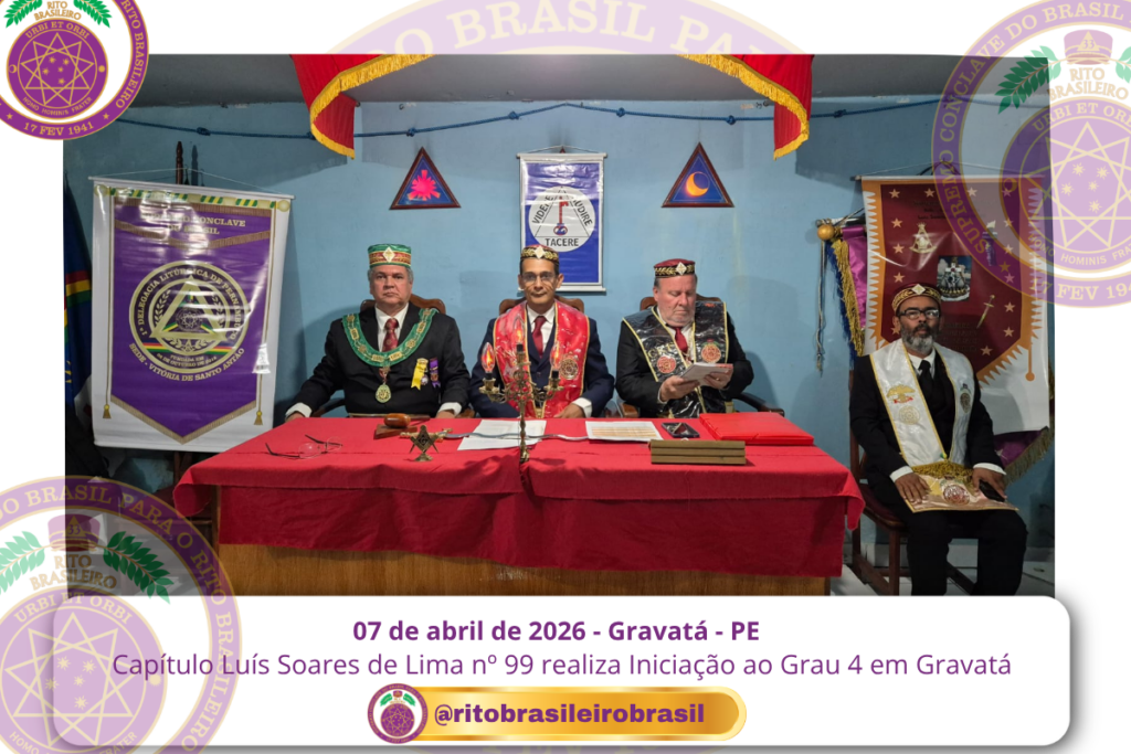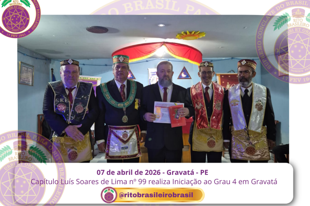 No dia sete de abril de dois mil e vinte e seis, às 20 horas, o Ilustre e Sublime Capítulo Luís Soares de Lima nº 99, dos Altos Graus do Rito Brasileiro, reuniu-se no templo da Augusta e Respeitável Loja Simbólica Fraternidade, União Gravatense nº 3555, no Vale de Gravatá, Pernambuco, para a realização de uma significativa Sessão de Iniciação ao Grau 4 – Mestre da Discrição.