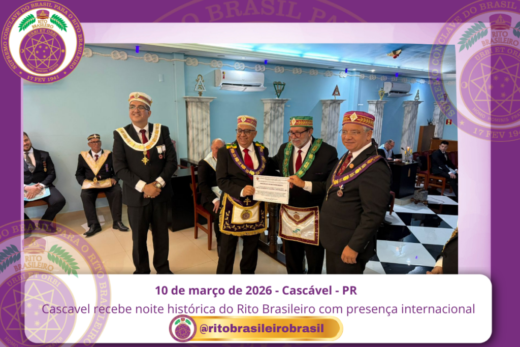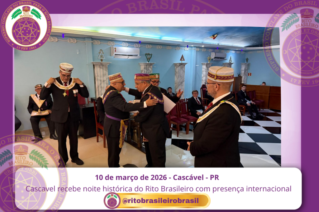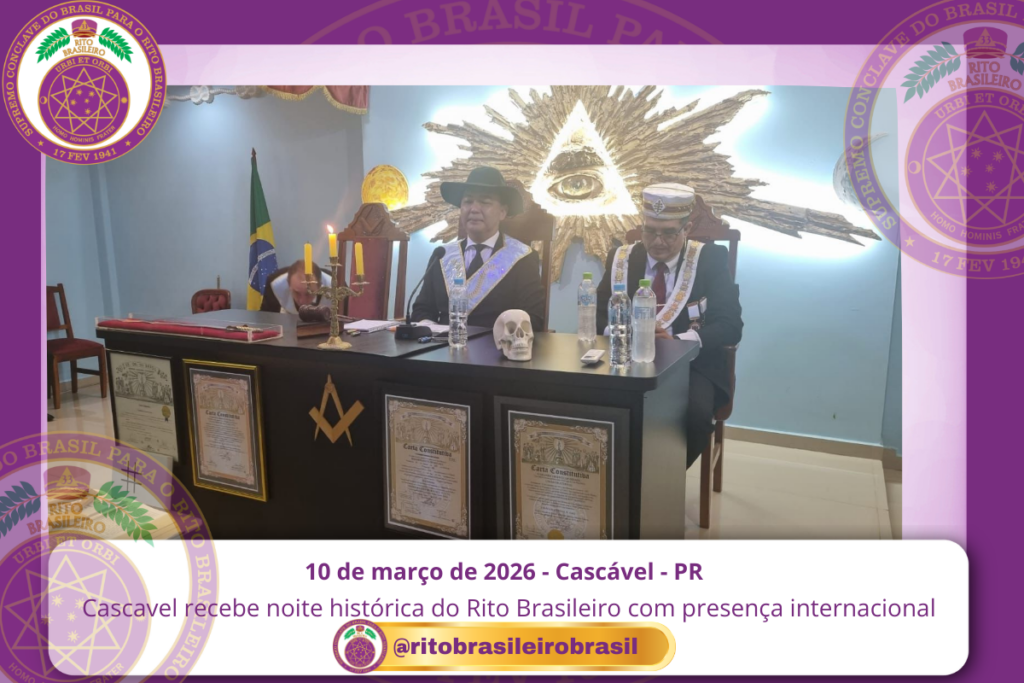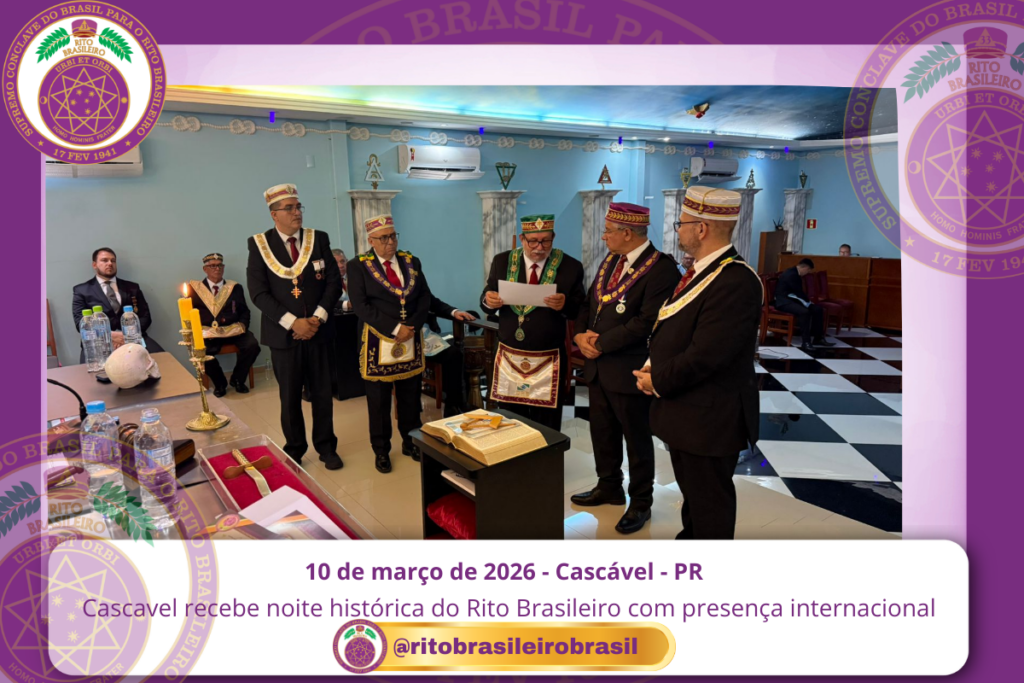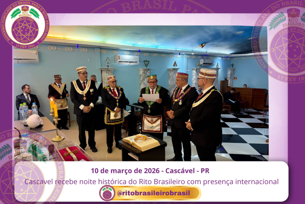 No dia 10 de março de 2026, no Oriente de Cascavel/PR, onde se encontra instalada em caráter excepcional e temporário a Sede Administrativa do Supremo Conclave do Brasil, foi realizada uma noite memorável para o Rito Brasileiro de Maçons Antigos, Livres e Aceitos.