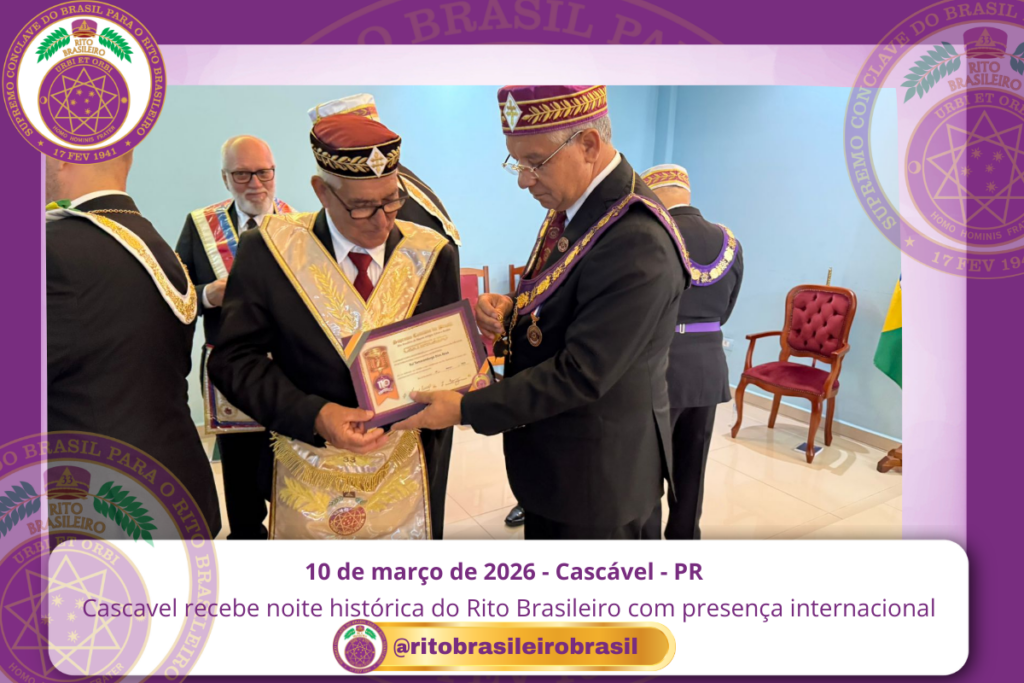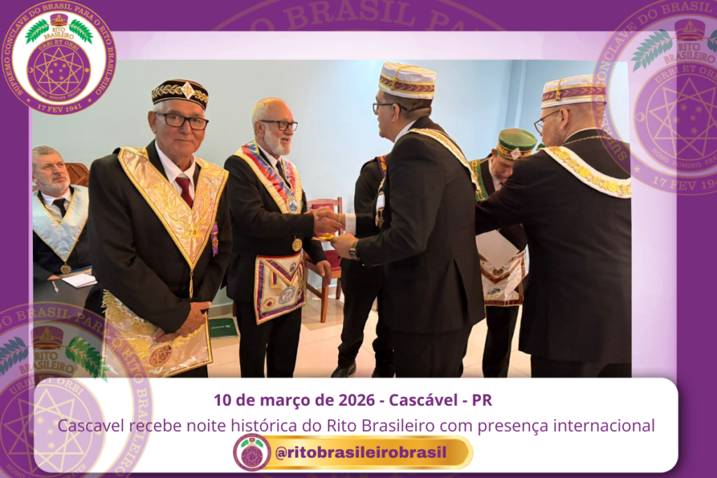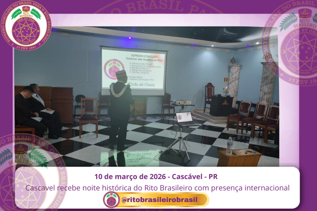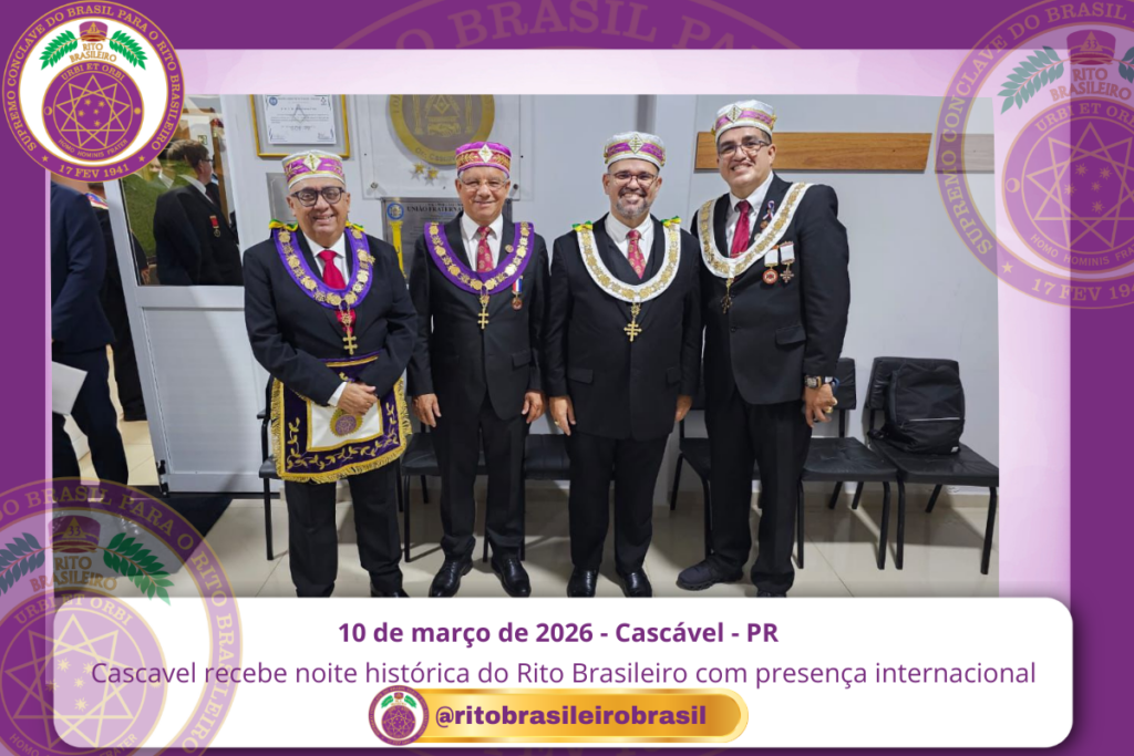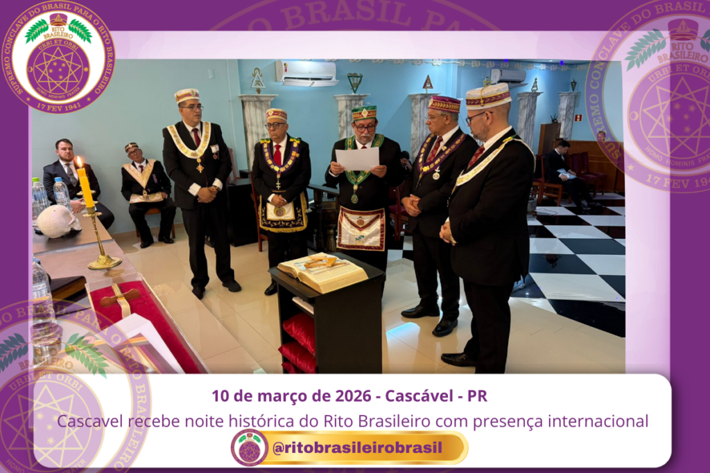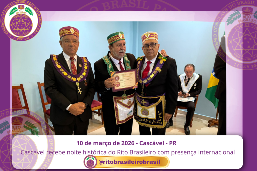 No dia 10 de março de 2026, no Oriente de Cascavel/PR, onde se encontra instalada em caráter excepcional e temporário a Sede Administrativa do Supremo Conclave do Brasil, foi realizada uma noite memorável para o Rito Brasileiro de Maçons Antigos, Livres e Aceitos.