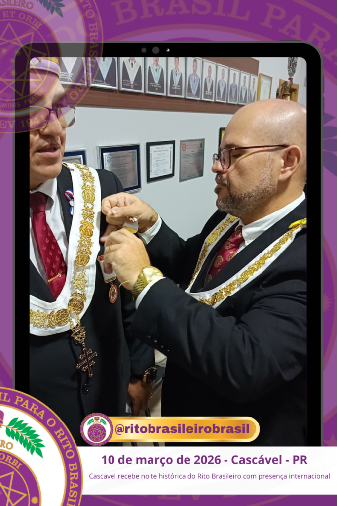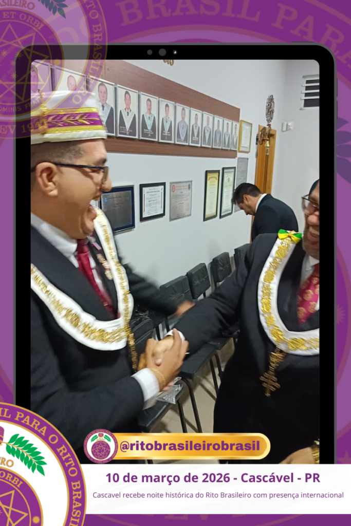 A Augusta e Respeitável Loja Simbólica Vigilantes do Oeste nº 2713, praticante do Rito Escocês Antigo e Aceito, em parceria com a 8ª Delegacia Litúrgica do Rito Brasileiro no Paraná, recebeu o Soberano Grande Primaz Juliano Coelho Braga e o Sereníssimo Irmão Cesar Roberto Daniel Dourado, Grande Regente do Supremo Conclave do Brasil, em uma Sessão marcada pela fraternidade, conhecimento e profundo espírito maçônico.