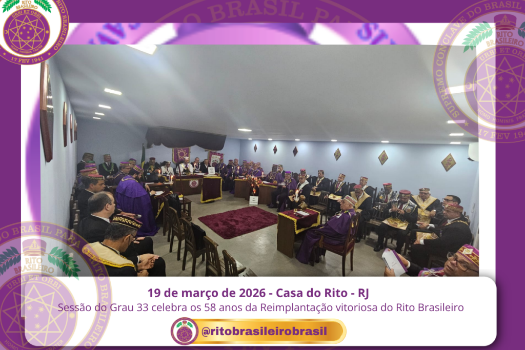 No dia 19 de março de 2026, data em que são celebrados os 58 anos da Reimplantação vitoriosa do Rito Brasileiro, a Casa do Rito Brasileiro foi palco de uma emocionante Sessão do Grau 33 – Servidor da Ordem, da Pátria e da Humanidade, reunindo Irmãos em um momento histórico de celebração e fortalecimento da […]