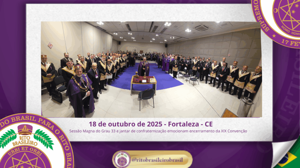 📘 Uma noite para a História: investidura de 27 irmãos no Sumo Grau 33 emociona a XIX Convenção do Rito Brasileiro No dia dezoito de outubro do ano de dois mil e vinte e cinco, ao Clima de Fortaleza, o Rito Brasileiro viveu um de seus momentos mais sublimes e emocionantes durante a realização da […]