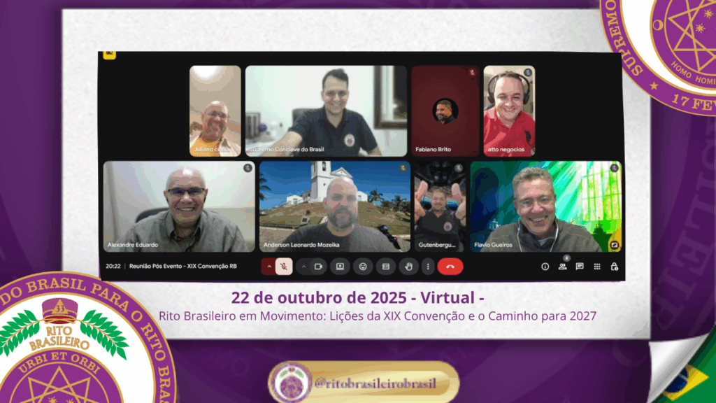 📘 Reunião virtual pós XIX Convenção reforça propósito, analisa feedbacks e inicia planejamento para Caldas Novas 2027 No dia 22 de outubro de 2025, o Supremo Conclave do Brasil promoveu, de forma virtual, a reunião oficial de avaliação da XIX Convenção Nacional do Rito Brasileiro. Com espírito de responsabilidade e fraternidade, o encontro reuniu membros […]
