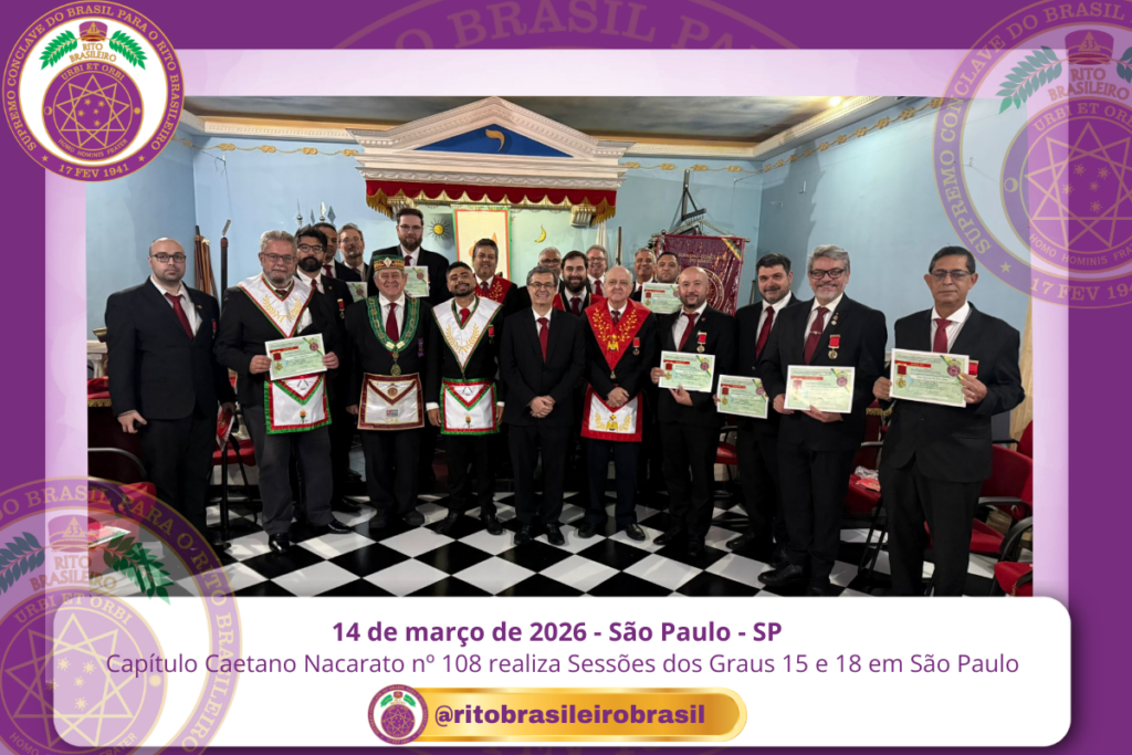 No dia 14 de março de 2026, O Ilustre e Sublime Capítulo Caetano Nacarato nº 108, ao Clima de São Paulo, jurisdicionado à 2ª Delegacia Litúrgica do Rito Brasileiro no Estado de São Paulo, realizou duas importantes Sessões Magnas de Iniciação na hierarquia dos Altos Graus do Rito Brasileiro de Maçons Antigos, Livres e Aceitos, […]