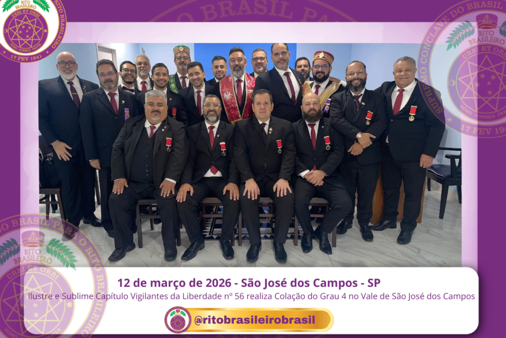 No dia doze de março de dois mil e vinte e seis, o Ilustre e Sublime Capítulo Vigilantes da Liberdade nº 56 realizou, no Vale de São José dos Campos, no Clima de São Paulo, uma significativa Sessão Magna de Colação do Grau 4 – Mestre da Discrição, marcando o início da jornada de novos […]