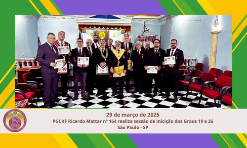 No dia 29/03/2025, foram realizadas no Poderoso Grande Conselho Kadosch Filosófico Ricardo Mattar nº 164 duas Sessões Magnas: a do Grau 19 e a do Grau 26, com a participação dos Irmãos Alex Luiz Pereira, Milton Gabriel Junior e Alex Telo.A presidência esteve a cargo do Grande Prior, Ir.’. Iraldo Camilo Gomes.Também esteve presente o […]