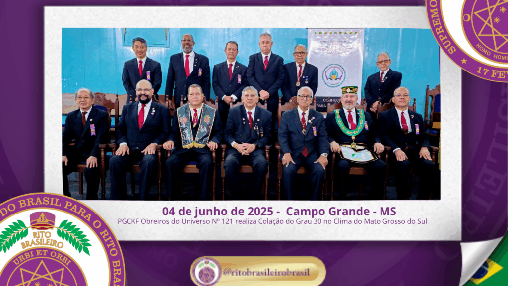 Em Sessão Magna presidida pelo Poderoso Irmão Grande Prior Edson Machado de Souza, dois Poderosos Irmãos foram colados no Grau 30 – Missionário da Filosofia, reafirmando o compromisso com os valores filosóficos do Rito Brasileiro. 📍 Grau 30 – Missionário da Filosofia no Clima de Mato Grosso do Sul No dia quatro de junho de […]