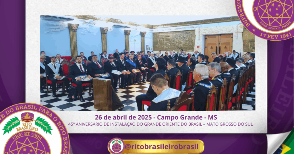 Na noite do dia 26 de abril de 2025, ocorreu a SESSÃO MAGNA COMEMORATIVA DO 45º ANIVERSÁRIO DE INSTALAÇÃO DO GOB-MS, primeiramente, com a reinauguração do Templo Nobre GESSÍRIO DOMINGOS MENDES, em seguida a Sessão Magna Especial realizada pela ARLS Aurora II – Benfeitora da Ordem, com a presença do Soberano Grão-Mestre Geral Irmão ADEMIR […]