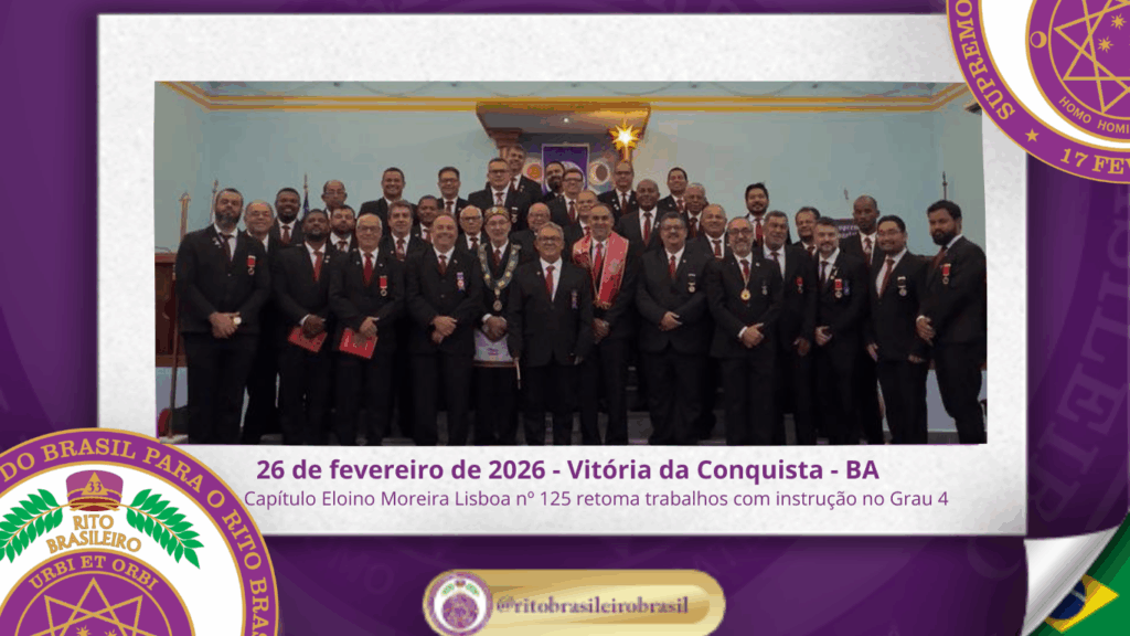 No dia 26 de fevereiro de 2026, o Ilustre e Sublime Capítulo Eloino Moreira Lisboa nº 125, ao Vale de Vitória da Conquista/BA, retomou suas atividades com a realização de Sessão de Instrução no Grau 4 – Mestre da Discrição, marcando o reinício dos trabalhos filosóficos com elevado espírito de estudo e união. 📘 Sessão […]