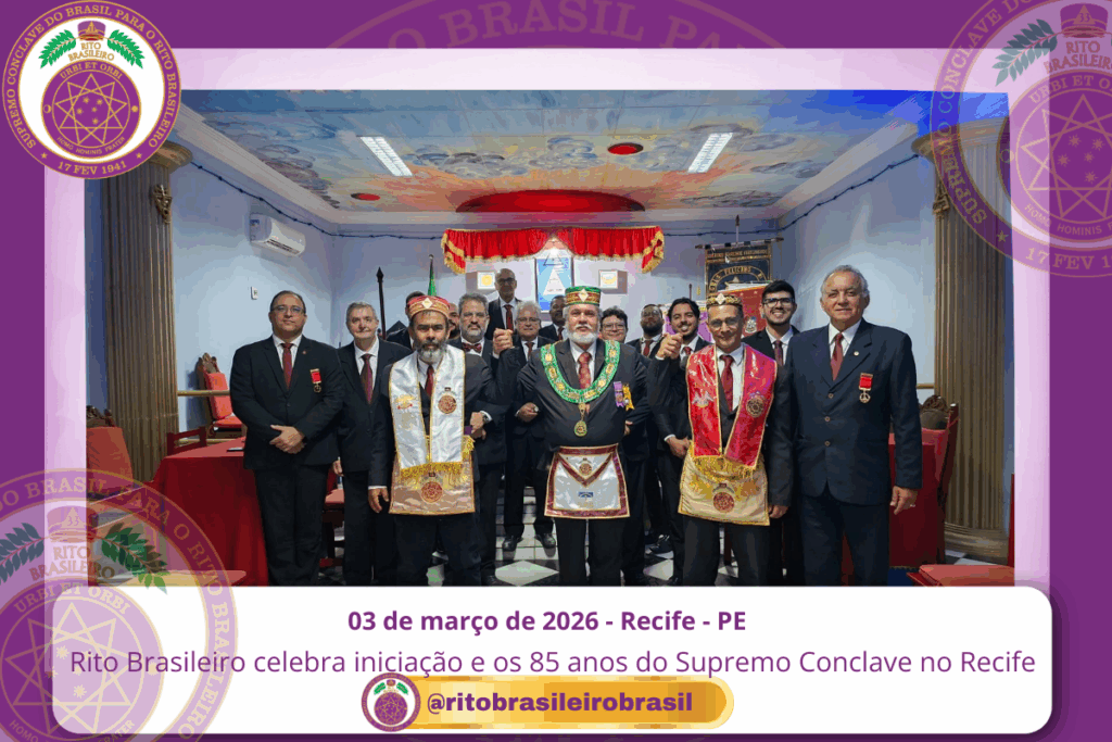 No dia 3 de março de 2026, ao Vale de Recife/PE, o Ilustre e Sublime Capítulo Luís Soares de Lima nº 99, jurisdicionado à 1ª Delegacia Litúrgica do Clima de Pernambuco, realizou Sessão Magna de Iniciação ao Grau 9 – Mestre da Justiça da hierarquia dos Altos Graus do Rito Brasileiro. A Sessão ocorreu em […]