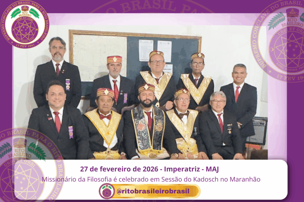 No dia 27 de fevereiro de 2026, o Poderoso Grande Conselho Kadosch Filosófico nº 184, ao Clima de Imperatriz/MA, realizou Sessão Magna de Elevação ao Grau 30 – Missionário da Filosofia, reafirmando o compromisso com a formação filosófica e doutrinária nos Altos Graus do Rito Brasileiro. 🛡 Elevação ao Grau 30 – Missionário da Filosofia […]