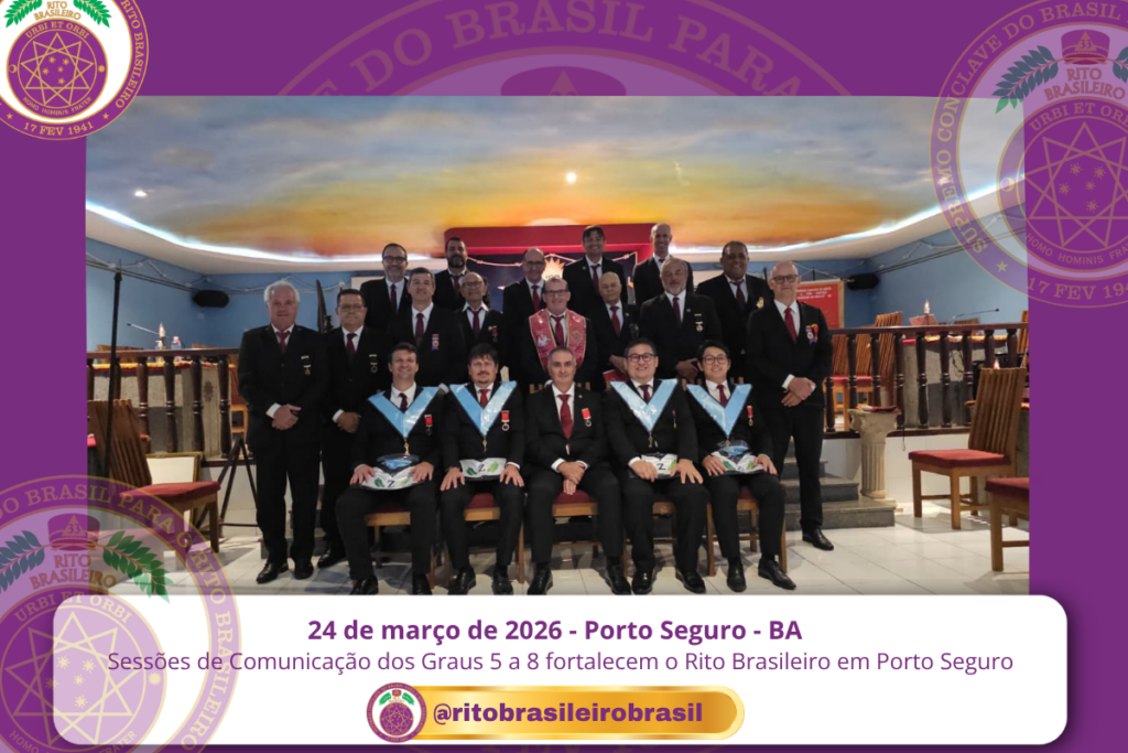 No dia 24 de março de 2026, o O Ilustre e Sublime Capítulo Timoneiros do Porto nº 39, no Vale de Porto Seguro, no Clima da Bahia, realizou Sessões de Comunicação dos Graus intermediários do Rito Brasileiro, fortalecendo a formação filosófica dos Irmãos. Na ocasião, foram comunicados os Graus 5 – Mestre da Lealdade, 6 […]