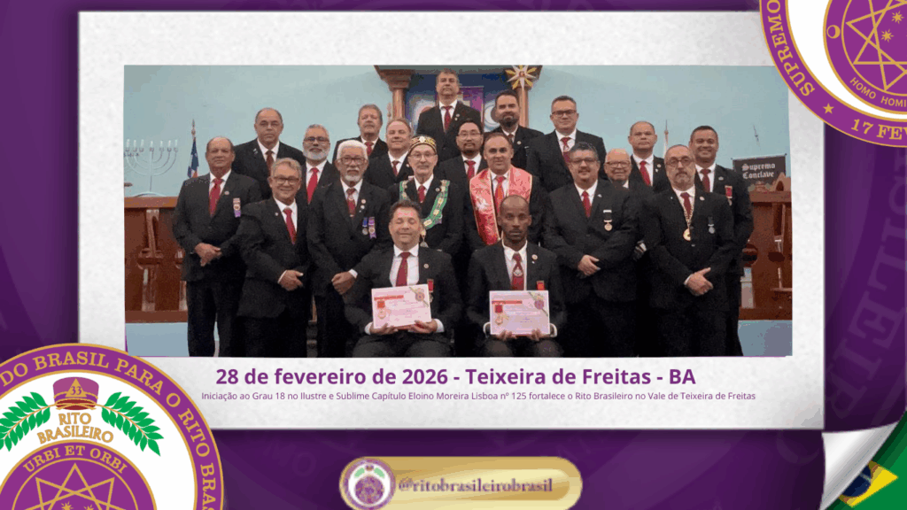 A Iniciação ao Grau 18 no Ilustre e Sublime Capítulo Eloino Moreira Lisboa nº 125 marcou a manhã do dia 28 de fevereiro no Vale de Teixeira de Freitas, Bahia. A cerimônia reuniu 20 Irmãos e reafirmou o compromisso com os Altos Graus Filosóficos do Rito Brasileiro. 📍 Sessão no Vale de Teixeira de Freitas […]