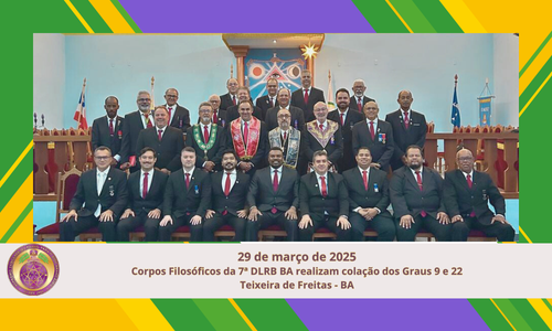 No dia 29 de março de 2025, ao Clima de Teixeira de Freitas-BA, realizaram-se duas Sessões Magnas. A primeira foi no ISC Eloíno Moreira Lisboa, n° 12 destinada à Colação do Grau 09, conduzida pelo Aterzata, o Ilustre Irmão Jairo Souto Quaresma, 33º. A segunda foi no PGCKF Joaquim Moreira, n° 162, a Colação do […]