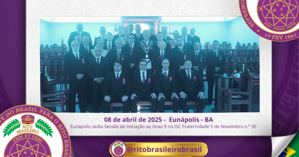No dia oito de abril de dois mil e vinte e cinco, foi realizada no Ilustre e Sublime Capítulo Fraternidade 5 de Novembro n.º 30, ao Vale de Eunápolis – Bahia, a Sessão Magna de Iniciação ao Grau 9 – Mestre da Justiça, do Rito Brasileiro de Maçons Antigos, Livres e Aceitos. A cerimônia foi […]