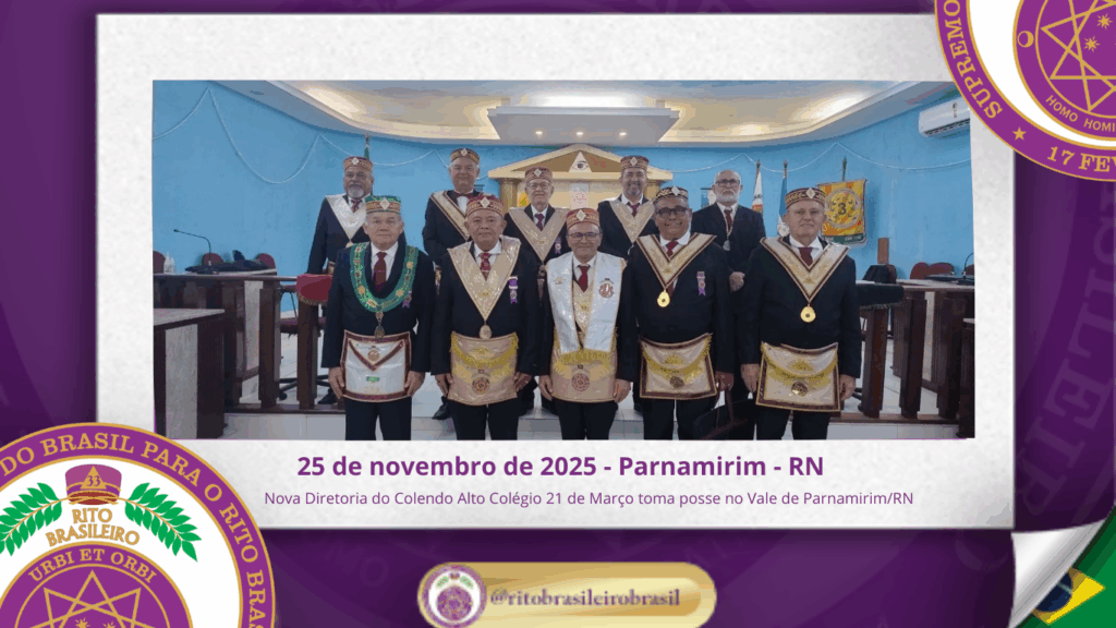 O Colendo Alto Colégio 21 de Março nº 217 realizou Sessão Especial de Posse de sua nova Diretoria para o período de 2025/2026, com destaque para a assunção do Egrégio Mestre José Ambrósio de Oliveira e presença de autoridades litúrgicas do Rito Brasileiro. 🏛 Sessão de Posse marca novo ciclo no Vale de Parnamirim No […]