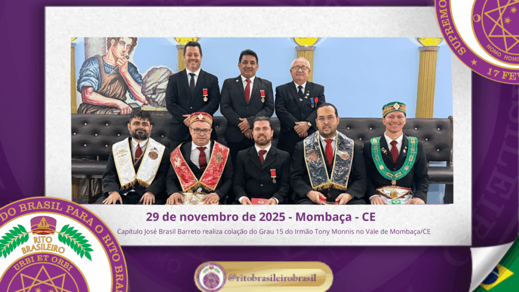 O Ilustre e Sublime Capítulo José Brasil Barreto realizou a colação do Grau 15 – Mestre da Liberdade – do Ilustre Irmão Tony Monnis, em Sessão conduzida com profundidade ritualística e prestigiada por autoridades litúrgicas do Rito Brasileiro. 🕯️ Colação do Grau 15 – Mestre da Liberdade No dia vinte e nove de novembro de […]