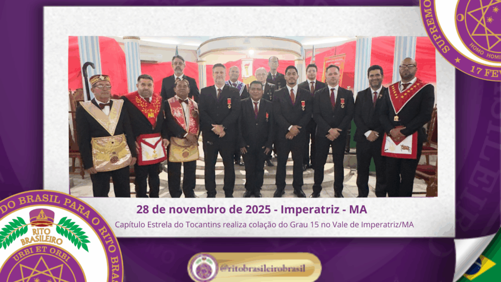 O Ilustre e Sublime Capítulo Estrela do Tocantins nº 142 realizou, no Vale de Imperatriz/MA, a colação do Grau 15 – Mestre da Liberdade – de seis novos Irmãos, em Sessão presidida pelo Eminente Irmão Lourival Pereira Nascimento. 🕯️ Seis novos Mestres da Liberdade no Capítulo Estrela do Tocantins No dia vinte e oito de […]