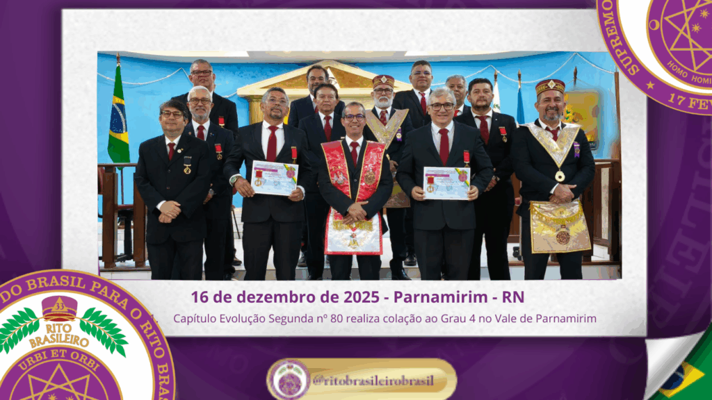 No dia dezesseis de dezembro de dois mil e vinte e cinco, o Ilustre e Sublime Capítulo Evolução Segunda nº 080, ao Vale de Parnamirim, realizou uma Sessão Magna de Colação ao Grau 4 – Mestre da Discrição, marcando um momento especial na trajetória de novos obreiros dos Altos Graus do Rito Brasileiro. 📍 Colação […]