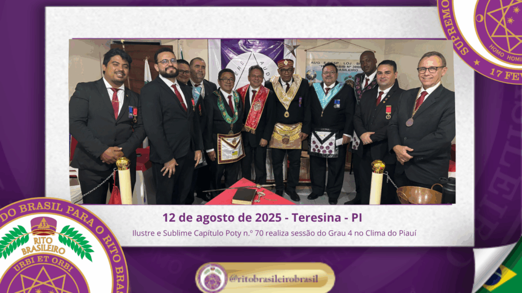 📍 No dia do Evento e Autoridades Presentes No dia doze de agosto de 2025, o Ilustre e Sublime Capítulo Poty n.º 70, ao Clima do Piauí, realizou uma bela e produtiva sessão dos Altos Graus Filosóficos, sob a presidência do Ilustre Irmão Aterzata Lucídio Beserra Primo. A sessão contou com a presença de diversas […]
