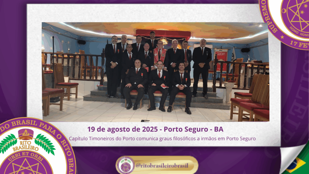 No dia dezenove de agosto de dois mil e vinte e cinco O Ilustre e Sublime Capítulo Timoneiros do Porto n° 39, ao Clima de Porto Seguro – Bahia, realizou as sessões de comunicação dos graus filosóficos 10 (Mestre da Tolerância), 11 (Mestre da Prudência), 12 (Mestre da Temperança) e 13 (Mestre da Probidade) aos […]