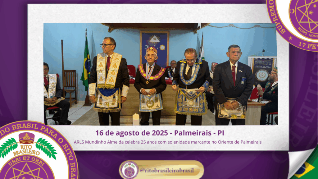 No dia vinte e três de agosto de dois mil e vinte e cinco 🎉 Sessão Solene Celebra os 25 Anos da ARLS Mundinho Almeida no Oriente de Palmeirais A Augusta e Respeitável Loja Simbólica Mundinho Almeida nº ___, ao Oriente de Palmeirais, realizou uma emocionante Sessão Solene em comemoração aos seus 25 anos de […]