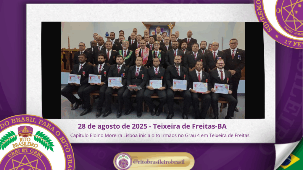 No dia vinte e oito de agosto de dois mil e vinte e cinco, no Vale de Teixeira de Freitas/BA, o Ilustre e Sublime Capítulo Eloino Moreira Lisboa nº 125 realizou uma marcante Sessão Magna de Iniciação ao Grau 4 – Mestre da Discrição, na qual oito novos Ilustres Irmãos foram iniciados nos Altos Graus […]