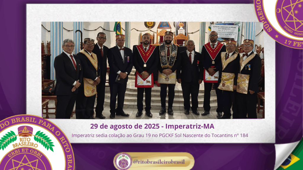 No dia vinte e nove de agosto de dois mil e vinte e cinco, o Poderoso Grande Conselho Kadosch Filosófico Sol Nascente do Tocantins nº 184, ao Clima de Imperatriz-MA, realizou uma significativa Sessão de Elevação dos Altos Graus Filosóficos do Rito Brasileiro. Na ocasião, foi realizada a colação do Grau 19 – Missionário da […]
