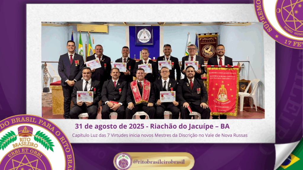 No dia vinte e nove de agosto de dois mil e vinte e cinco, o Ilustre e Sublime Capítulo Evilásio Mascarenhas Rios nº 43, ao Vale de Riachão do Jacuípe – BA, realizou uma Sessão Magna de Iniciação ao Grau 4 – Mestre da Discrição do Rito Brasileiro, no templo da Augusta e Respeitável Loja […]