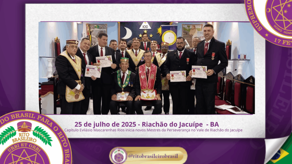 No dia vinte e cinco de julho do ano de dois mil e vinte e cinco, o Ilustre e Sublime Capítulo Evilásio Mascarenhas Rios nº 43, ao Vale de Riachão do Jacuípe – BA, realizou uma Magna Sessão de Iniciação ao Grau 14 – Mestre da Perseverança do Rito Brasileiro de Maçons Antigos, Livres e […]