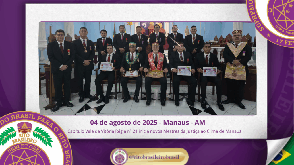 No dia 04 de agosto de 2025, ao Clima de Manaus – AM, o Ilustre Irmão Rodolpho Saad, Aterzata do Ilustre e Sublime Capítulo Vale da Vitória Régia nº 21, conduziu com esmero e dedicação a Sessão Magna de Iniciação ao Grau 9 – Mestre da Justiça, da hierarquia dos Altos Graus do Rito Brasileiro […]