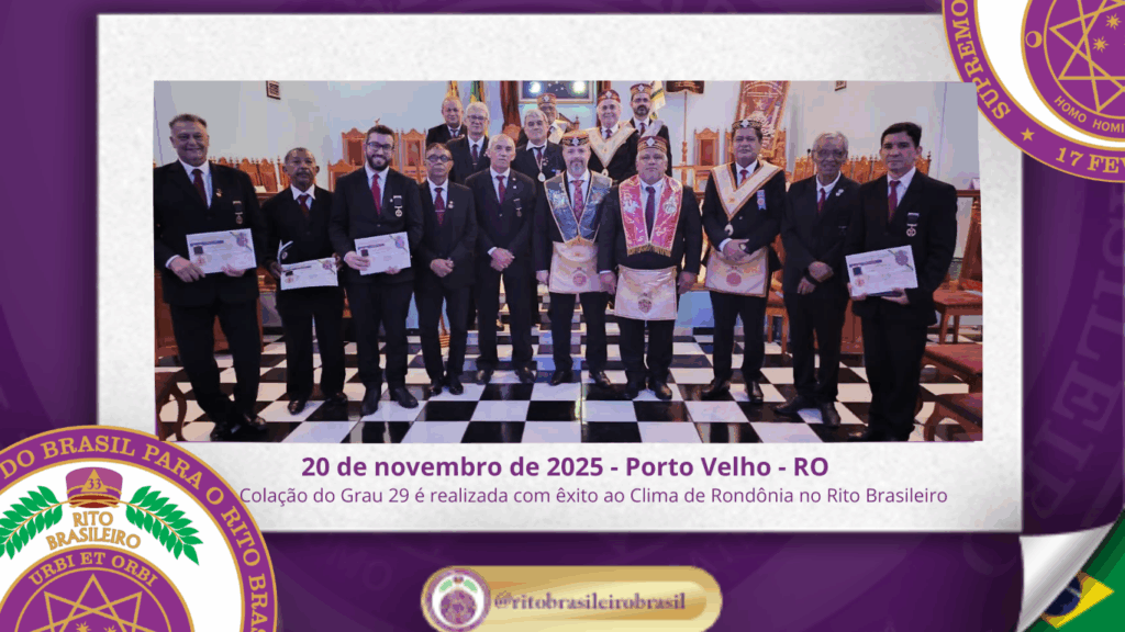 No dia vinte de novembro de dois mil e vinte e cinco, o Poderoso Grande Conselho Kadosch Filosófico Dr. Cândido Ferreira de Almeida n.º 114, ao Vale de Porto Velho – RO, realizou uma memorável sessão destinada à colação do Grau 29 – Missionário da Religião, marco importante na trajetória dos Altos Graus do Rito […]