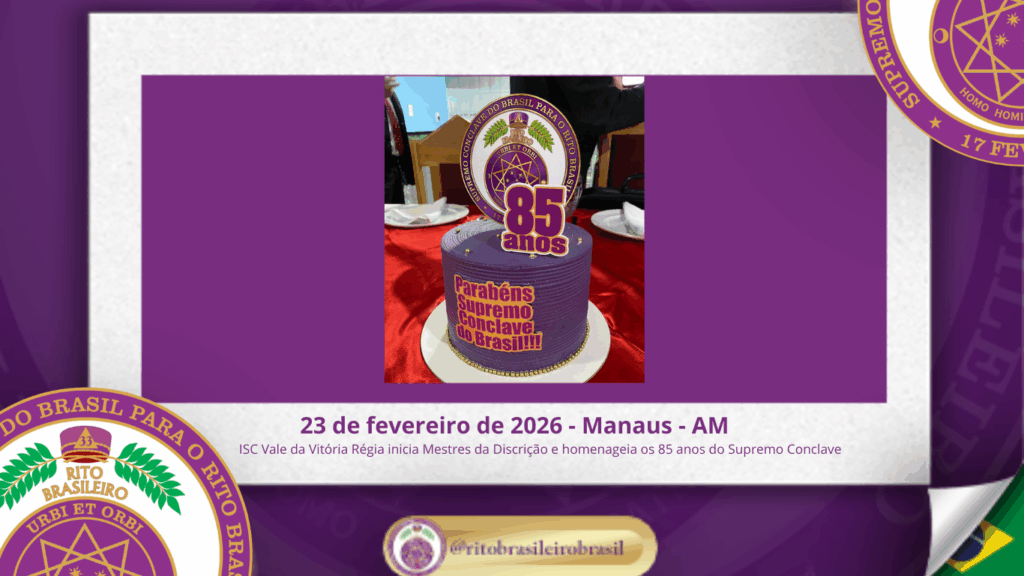 No dia 23 de fevereiro de 2026, o Ilustre e Sublime Capítulo Vale da Vitória Régia nº 21, ao Vale de Manaus/AM, realizou Sessão Magna de Iniciação ao Grau 4 – Mestre da Discrição, fortalecendo os Altos Graus do Rito Brasileiro no Clima do Amazonas. 🛡 Iniciação de Novos Mestres da Discrição A Sessão foi […]