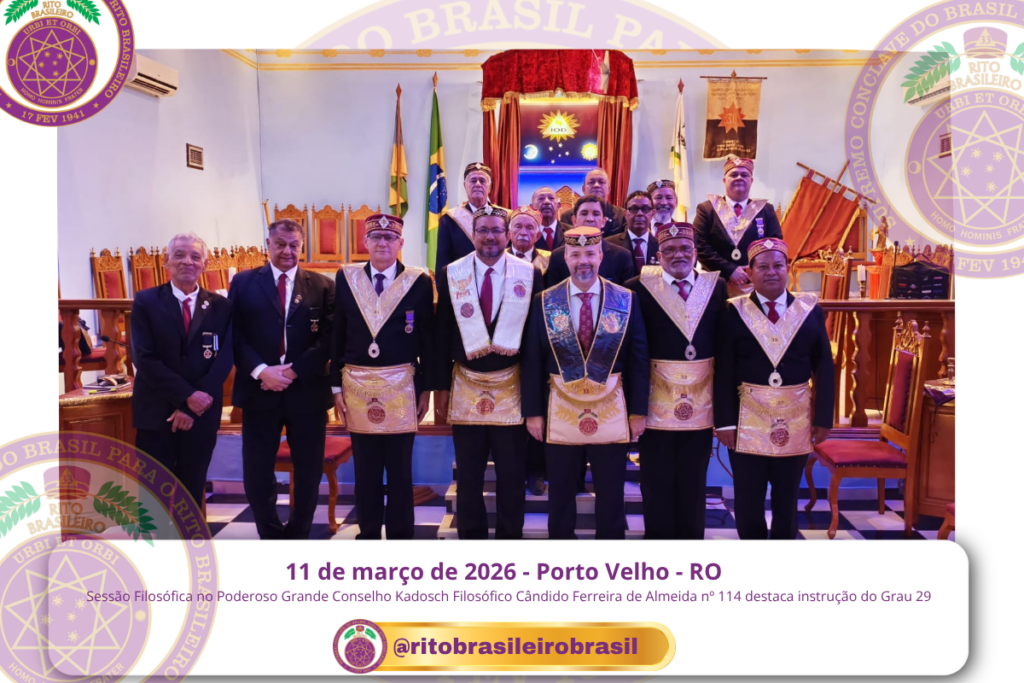 No dia 11 de março de 2026, o Poderoso Grande Conselho Kadosch Filosófico Cândido Ferreira de Almeida nº 114 realizou importante Sessão dedicada à instrução da parte 2 do adendo do ritual do Grau 29. 📍 Contexto da Sessão no Clima A Sessão foi conduzida com elevado espírito de compromisso doutrinário, reunindo Irmãos dedicados ao […]