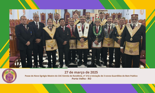 No dia 27 de março de 2025, o Colendo Alto Colégio Estrela de Rondônia, nº 212, realizou uma Sessão Magna de Posse do Poderoso Irmão Francisco Alencar como novo Egrégio Mestre deste CAC. Na sequência, ocorreu a Colação de Grau de três novos Guardiões do Bem Público, sendo eles os Poderosos Irmãos Sérgio Galvão, Rudyraphles […]