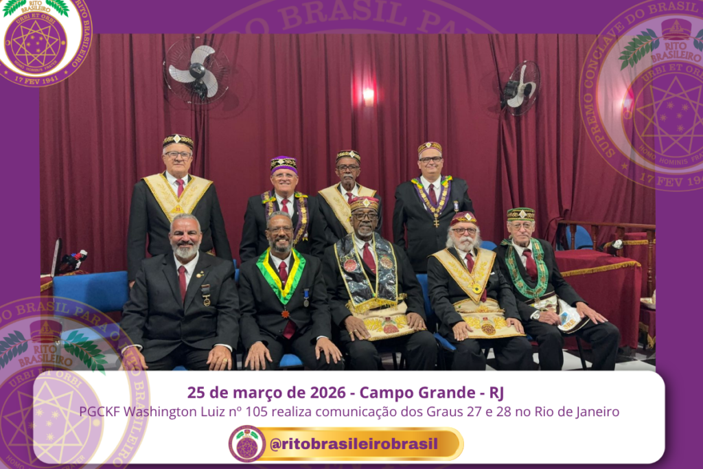 No dia 25 de março de 2026, no Vale de Campo Grande, no Clima do Rio de Janeiro, o Poderoso Grande Conselho Kadosch Filosófico Washington Luiz nº 105 realizou uma importante Sessão de Concessão por Comunicação dos Graus 27 e 28, fortalecendo os trabalhos dos Altos Graus Filosóficos do Rito Brasileiro de Maçons Antigos, Livres […]