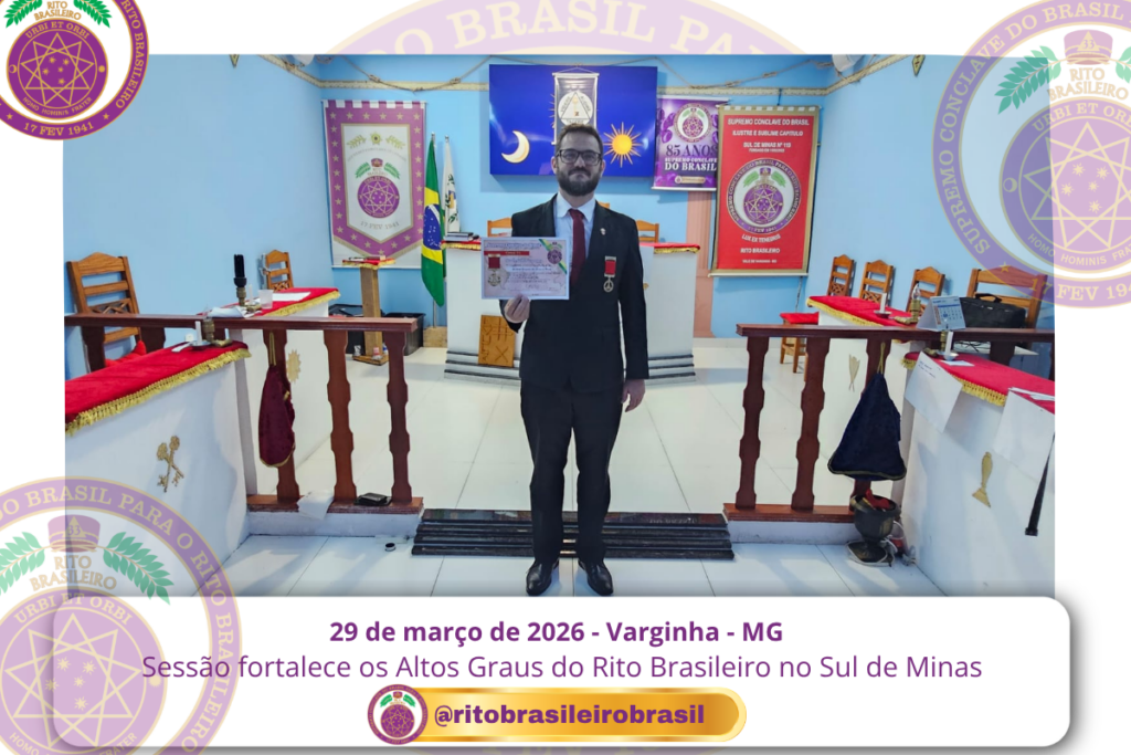 No dia 29 de março de 2026, ao Vale de Varginha/MG, foi realizada importante Sessão na Augusta e Respeitável Loja Simbólica Fraternidade Varginhense nº 3556, com início às 9 horas, marcando mais um momento significativo para os Altos Graus do Rito Brasileiro de Maçons Antigos, Livres e Aceitos. Na ocasião, o O Ilustre e Sublime […]