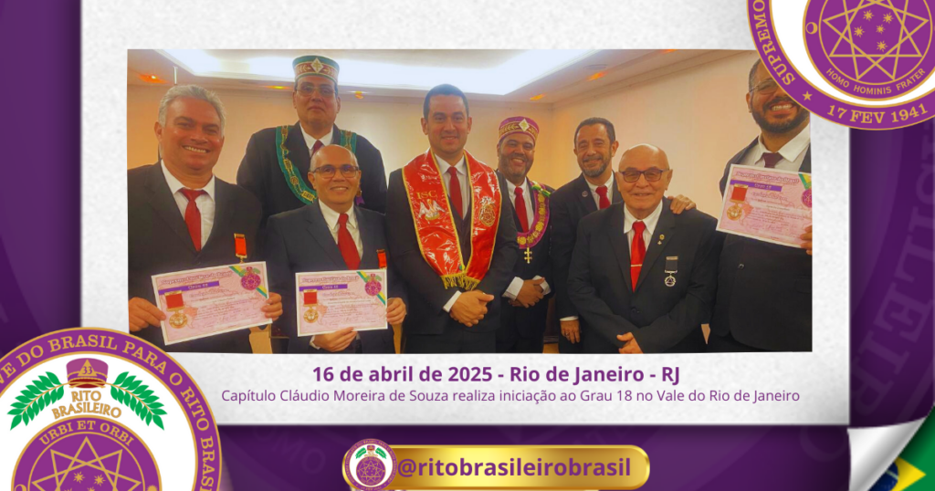 No dia dezesseis de abril de dois mil e vinte e cinco, o Ilustre e Sublime Capítulo Grão-Mestre Cláudio Moreira de Souza nº 129, ao Vale do Rio de Janeiro, realizou uma marcante Sessão Magna de Iniciação ao Grau 18 – Cavaleiro Rosa-Cruz no âmbito dos Altos Graus Filosóficos do Rito Brasileiro de Maçons Antigos, […]