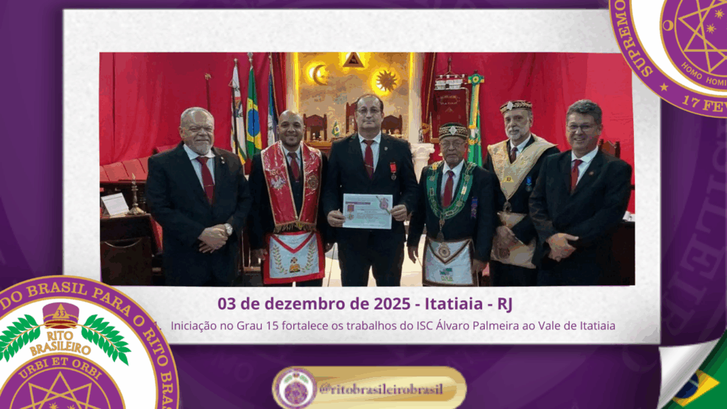No dia três de dezembro de dois mil e vinte e cinco O Ilustre e Sublime Capítulo Álvaro Palmeira, n.º 50, ao Vale de Itatiaia, no Clima do Rio de Janeiro, realizou uma memorável Sessão Magna de Iniciação ao Grau 15 – Cavaleiro da Liberdade, do Ilustre Irmão Márcio José Eleutério, fortalecendo o compromisso do […]