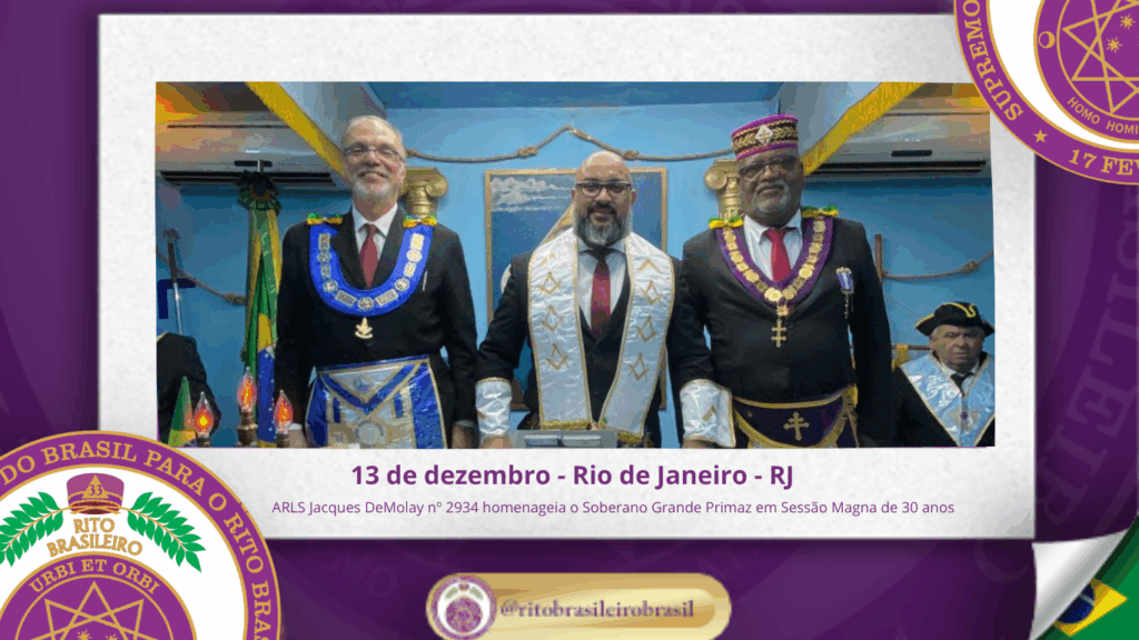 No dia treze de dezembro de dois mil e vinte e cinco, a Augusta e Respeitável Loja Simbólica Jacques DeMolay nº 2934, do Rito Brasileiro, realizou, ao Oriente de sua jurisdição, uma emocionante Sessão Magna Comemorativa pelos seus 30 anos de fundação, celebrando três décadas de História, Trabalho e Fraternidade. 🎖 Homenagem ao Soberano Grande […]