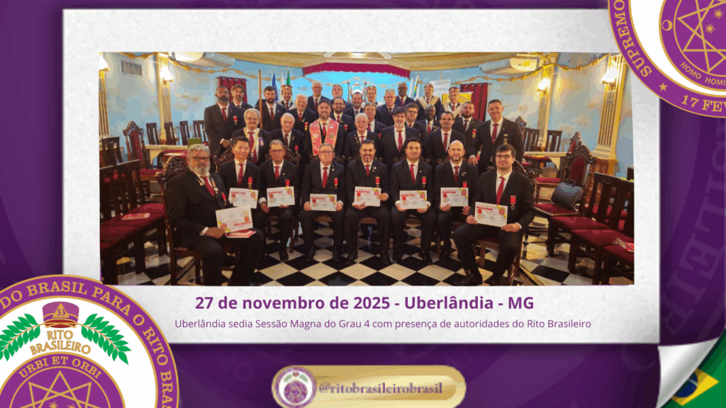 No dia 27 de novembro de 2025, o Ilustre e Sublime Triângulo nº 78, ao Vale de Uberlândia/MG, promoveu uma marcante Sessão Magna de Iniciação ao Grau 4 – Mestre da Discrição, acolhendo novos Irmãos aos Altos Graus do Rito Brasileiro de Maçons Antigos, Livres e Aceitos. 📍 Iniciação de Ilustres Irmãos no Grau 4 […]