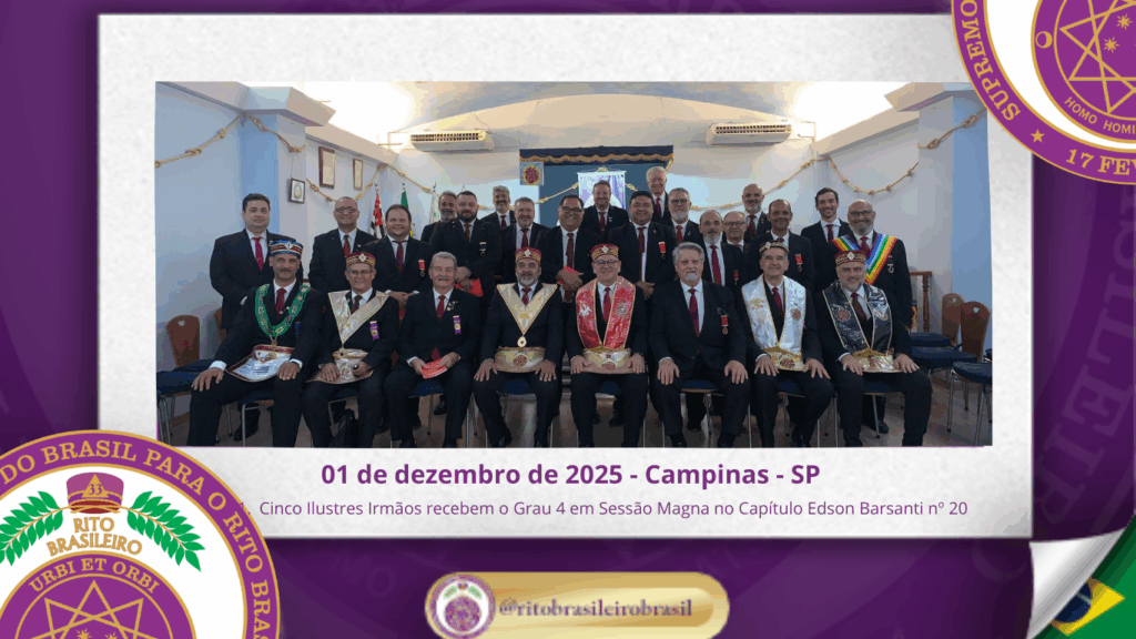 No dia primeiro de dezembro do ano de dois mil e vinte e cinco, o Ilustre e Sublime Capítulo Ir∴ Edson Barsanti – nº 20, ao Vale de Campinas, realizou uma significativa Sessão Magna de Colação do Grau 4 – Mestre da Discrição, marcando o fortalecimento e a expansão do Rito Brasileiro de Maçons Antigos, […]