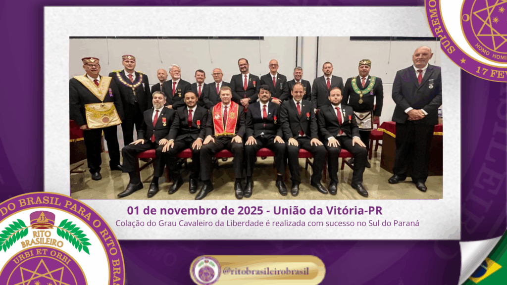 No dia primeiro de novembro de dois mil e vinte e cinco, o Ilustre e Sublime Capítulo Sul Paranaense n.º 102, ao Vale de União da Vitória – PR, realizou uma marcante Sessão Magna destinada à Colação do Grau 15 – Cavaleiro da Liberdade, nos Altos Graus do Rito Brasileiro de Maçons Antigos, Livres e […]