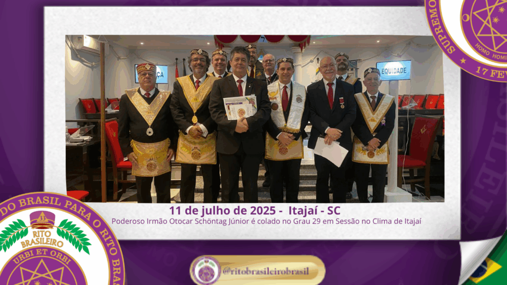 No dia onze de julho do ano de dois mil e vinte e cinco, ao Clima de Itajaí, Estado de Santa Catarina, o Poderoso Grande Conselho Kadosch Filosófico Alarico de Souza Neves nº 131 realizou uma Sessão Magna de Colação do Grau 29 – Missionário da Religião, fortalecendo os pilares filosóficos e espirituais do Rito […]